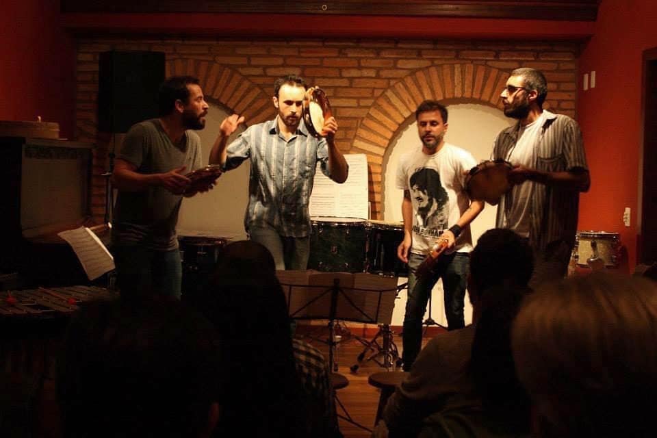 Oficina de pandeiro promovida pelo GLiP com Pandeiro Repique Duo (RJ) na Escola Garagem 2020 – Florianópolis/SC (21/04/17)
